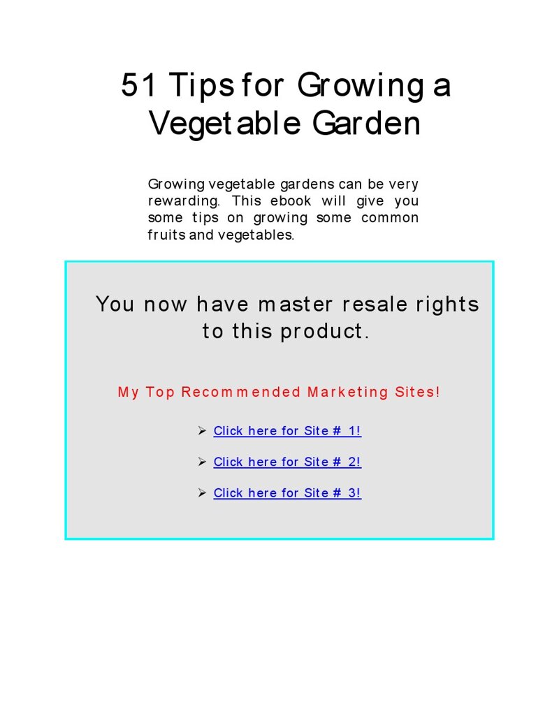 Description: Growing vegetable gardens can be very rewarding. This ebook will give you some tips on growing some common fruits and vegetables.